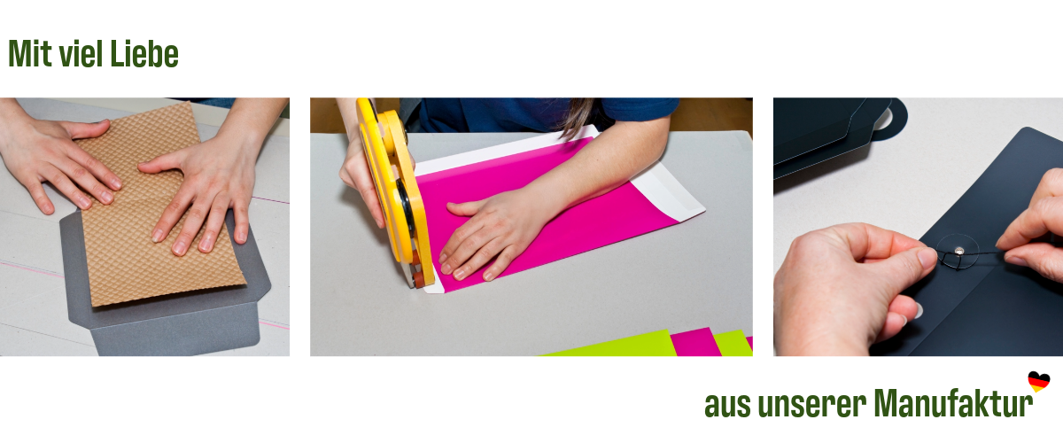 In unserer Kategorie „Manufaktur“ erwarten euch handgefertigte Briefumschläge, die wir in Rodgau mit viel Liebe zum Detail herstellen.